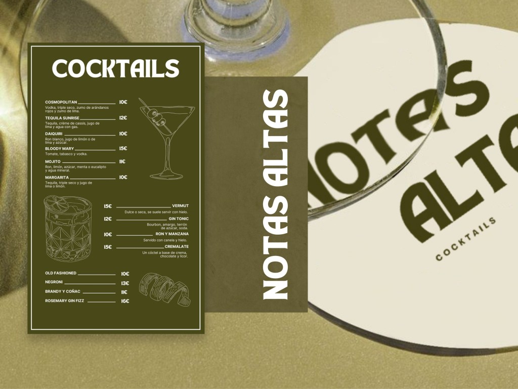Propuesta de branding para una marca de cócteles. El enfoque de esta propuesta es crear una identidad de marca que evoque un ambiente relajado, divertido y moderno, ideal para aquellos momentos en los que las personas buscan desconectar y disfrutar.